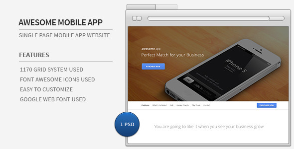 About Awesome Mobile App - Single Page PSD Template Nulled