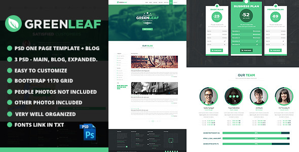 About GreenLeaf One Page Web + Blog PSD Template Nulled